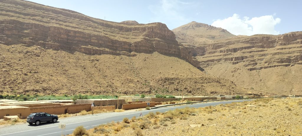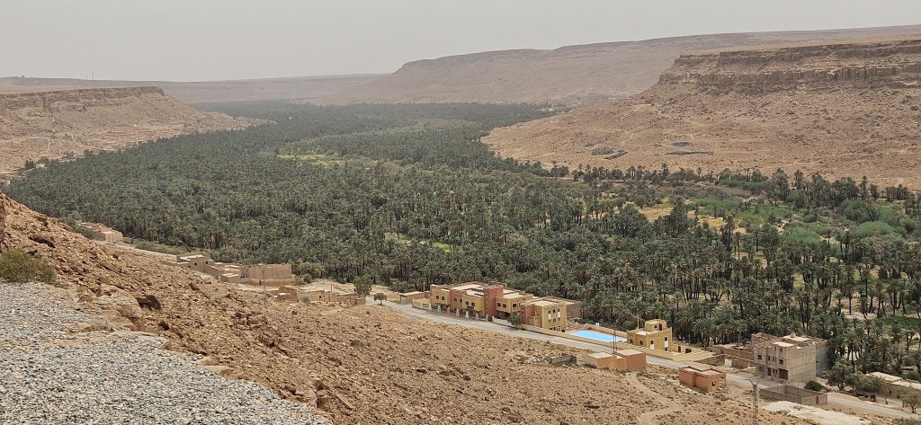 Crossing the Atlas mountains, the pace of life clearly changes – especially once you venture past the fancy resorts of Ifrane and Michlifen. The Middle Atlas gets lots of rain, and so agriculture and forestry are important there. But still there are fewer towns and the roads are much less busy than in the coastal plain. Then one descends into the wind-swept Moulouya valley and after crossing the river, the High Atlas mountains start looming in the distance. We had a room booked at a place called Dar Al Qanass Imane, which was described as a “just a little off of the main road” and it was that! Awesome place, though. Remote, quiet and with a big wall around the property, it’s a great place to get away from hectic city life, and it may also be a great place for surviving the “Zombie Apocalypse”