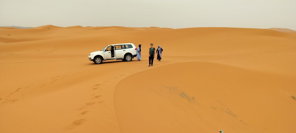 The next morning, we packed our stuff and loaded into Mustafa’s Pajero, then we rode the camels back to Merzouga.